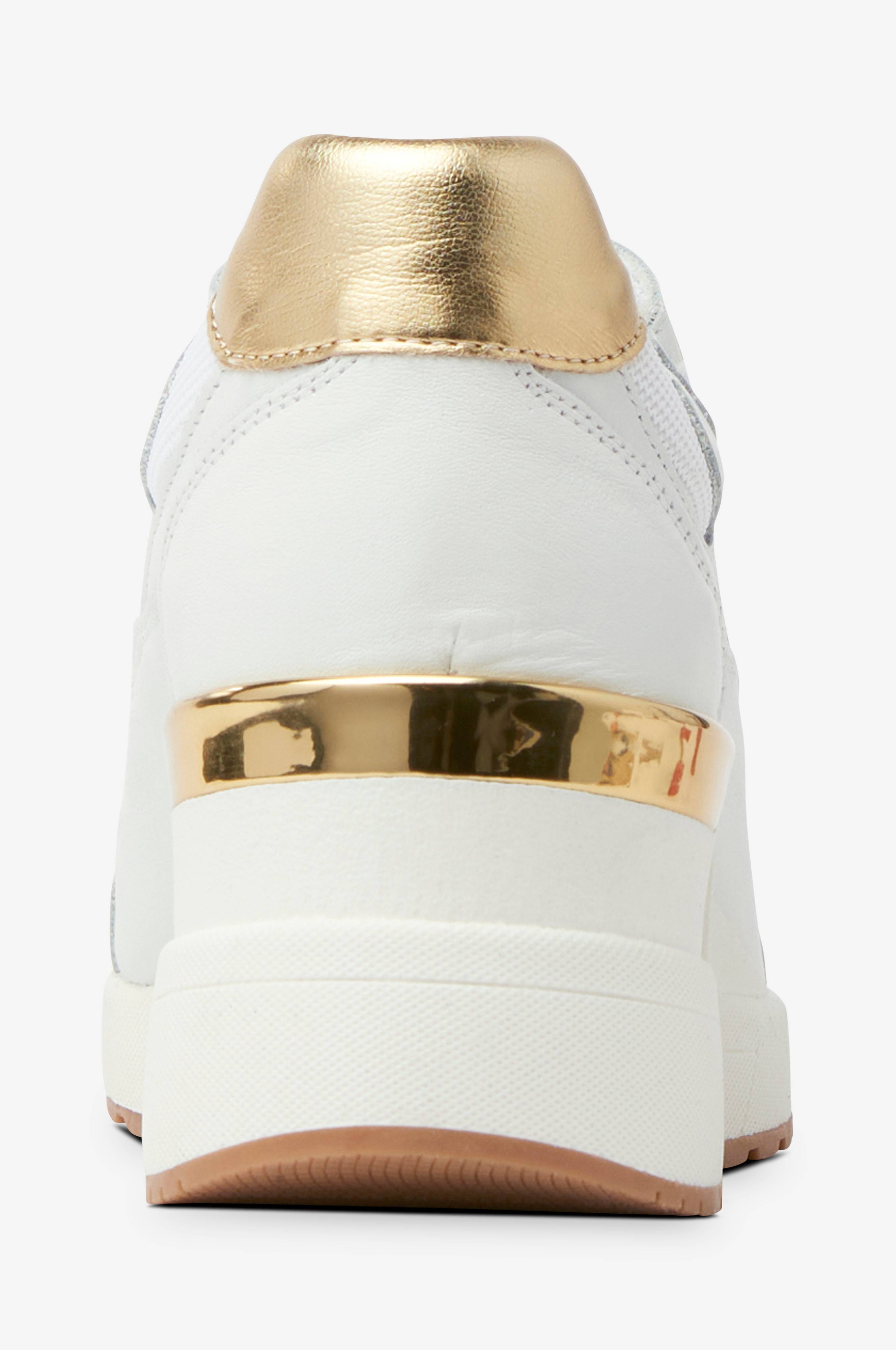 Sneakers med ovandel i mesh och skinn med guldfärgade detaljer. Johanna är känd för att slåss med näbbar och klor för att få exakt som hon vill. I våras fick jag samtalet från dem och jag kommer aldrig att. Vattert innersåle i semsket skinn og sålekant med gullfargede nagler. Fåtal skor åter i lager, klicka på länken så kommer du direkt in till både vita och svarta sneakers.